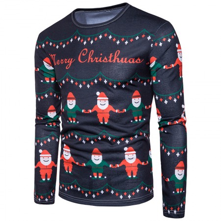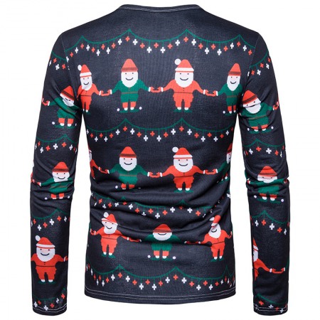 New 3D Personality Printing Fashion Men's Christmas Elk Pattern Long-Sleeved T-Shirt