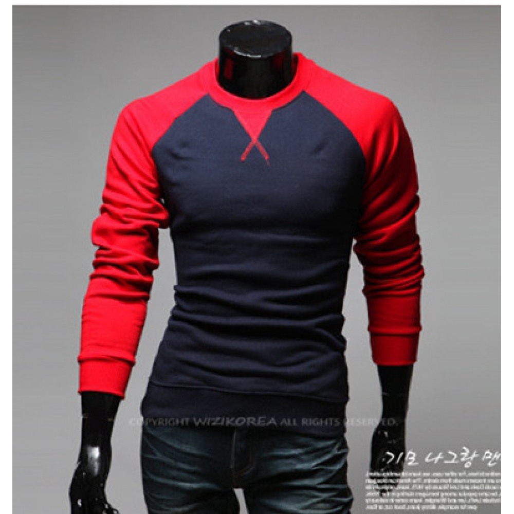 New Summer Men's Short-Sleeved T-Shirt Mens Contrast Striped Slim Casual T-Shirt