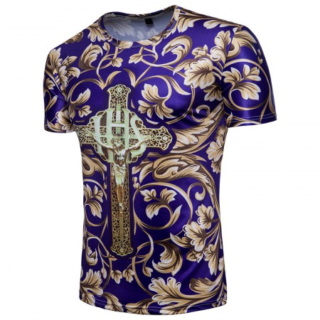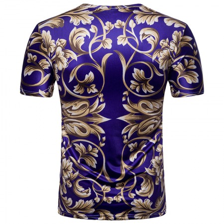 Fashion Male Creative Ethnic Style Floral 3D Printing Short Sleeve T-Shirt