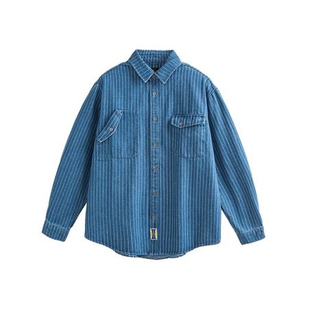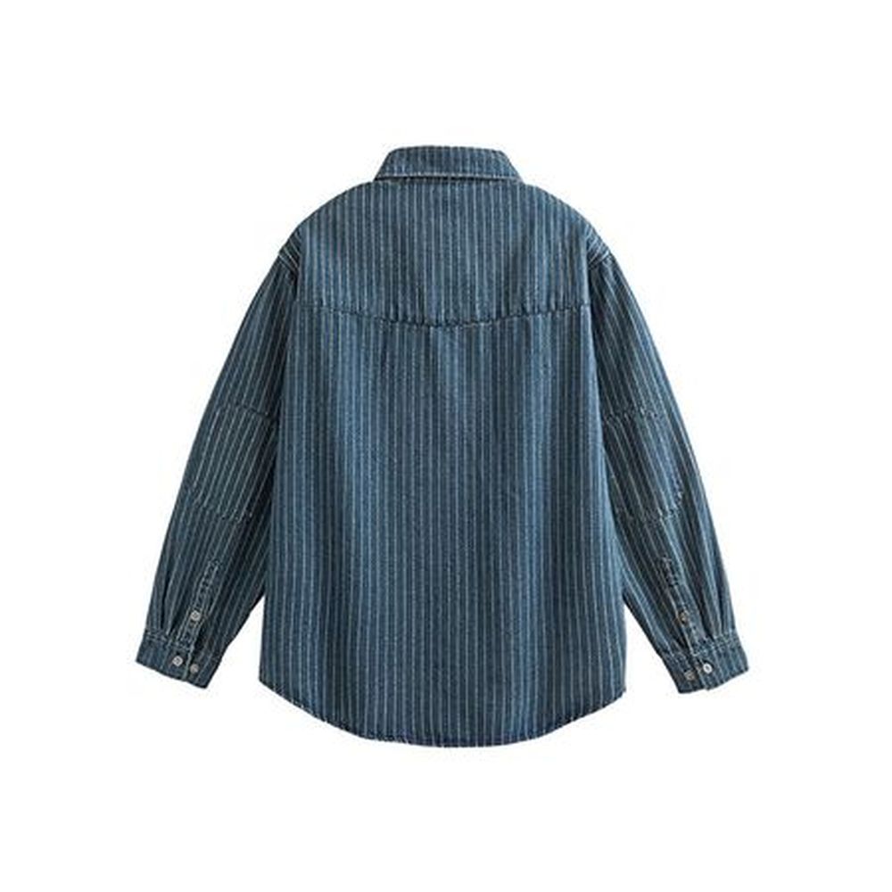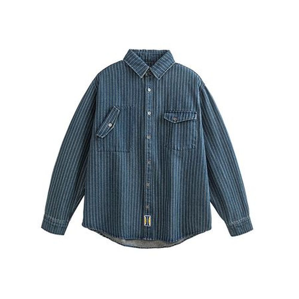 Men's Retro Striped Denim Shirt Washed Shirt Jacket