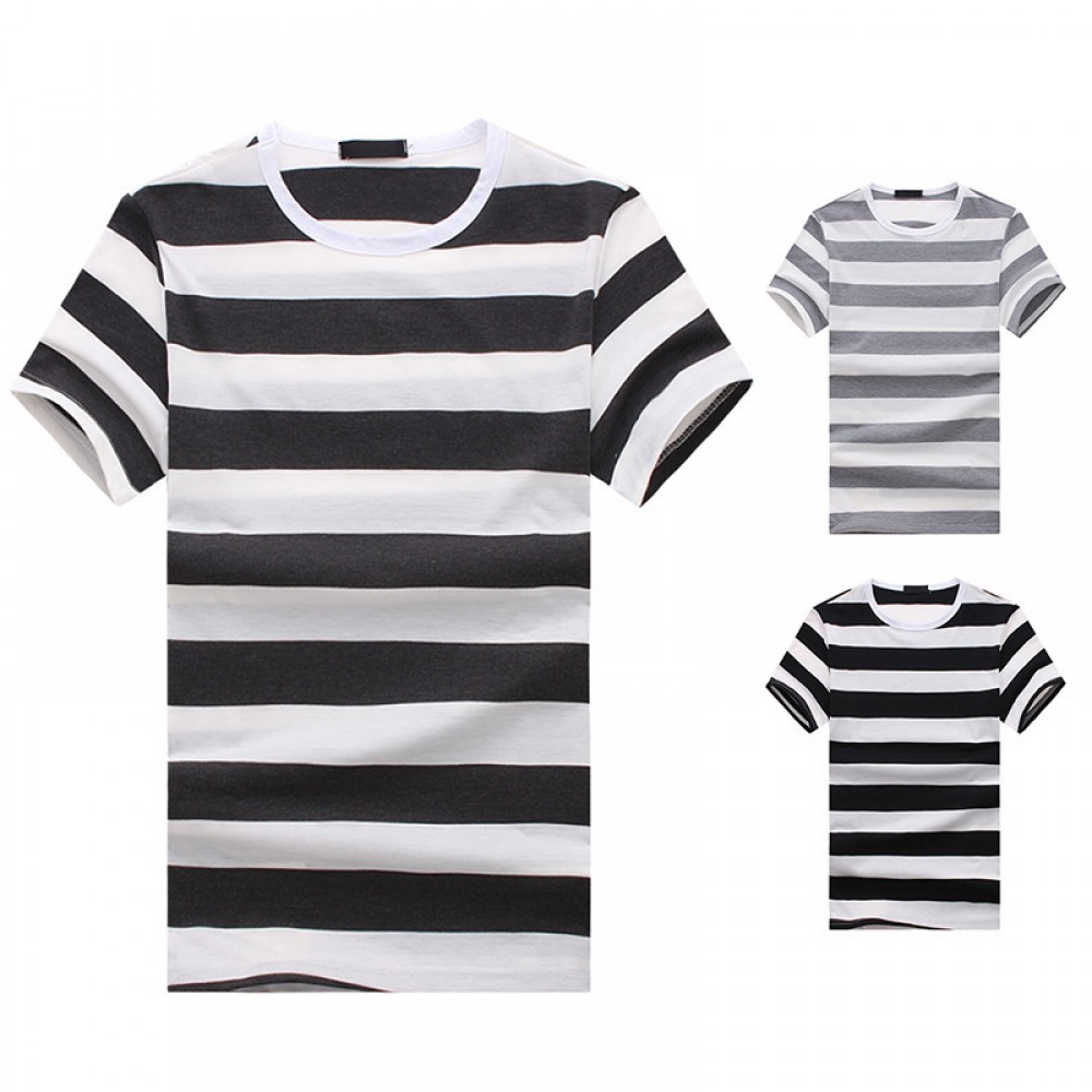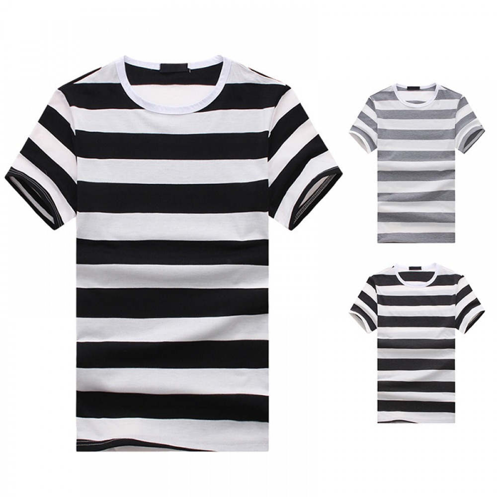 New Summer Men's Short-Sleeved T-Shirt Men's Contrast Striped Slim Casual T-Shirt
