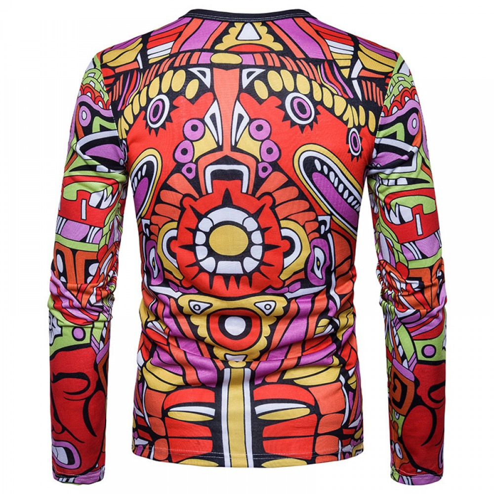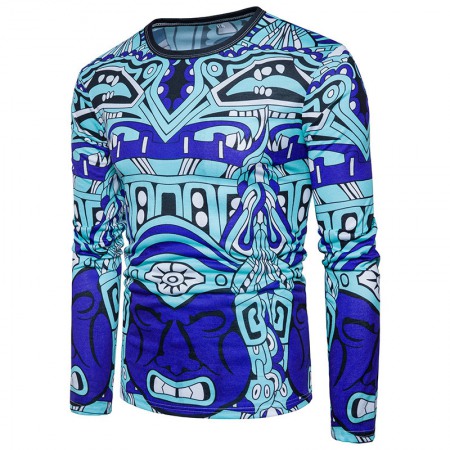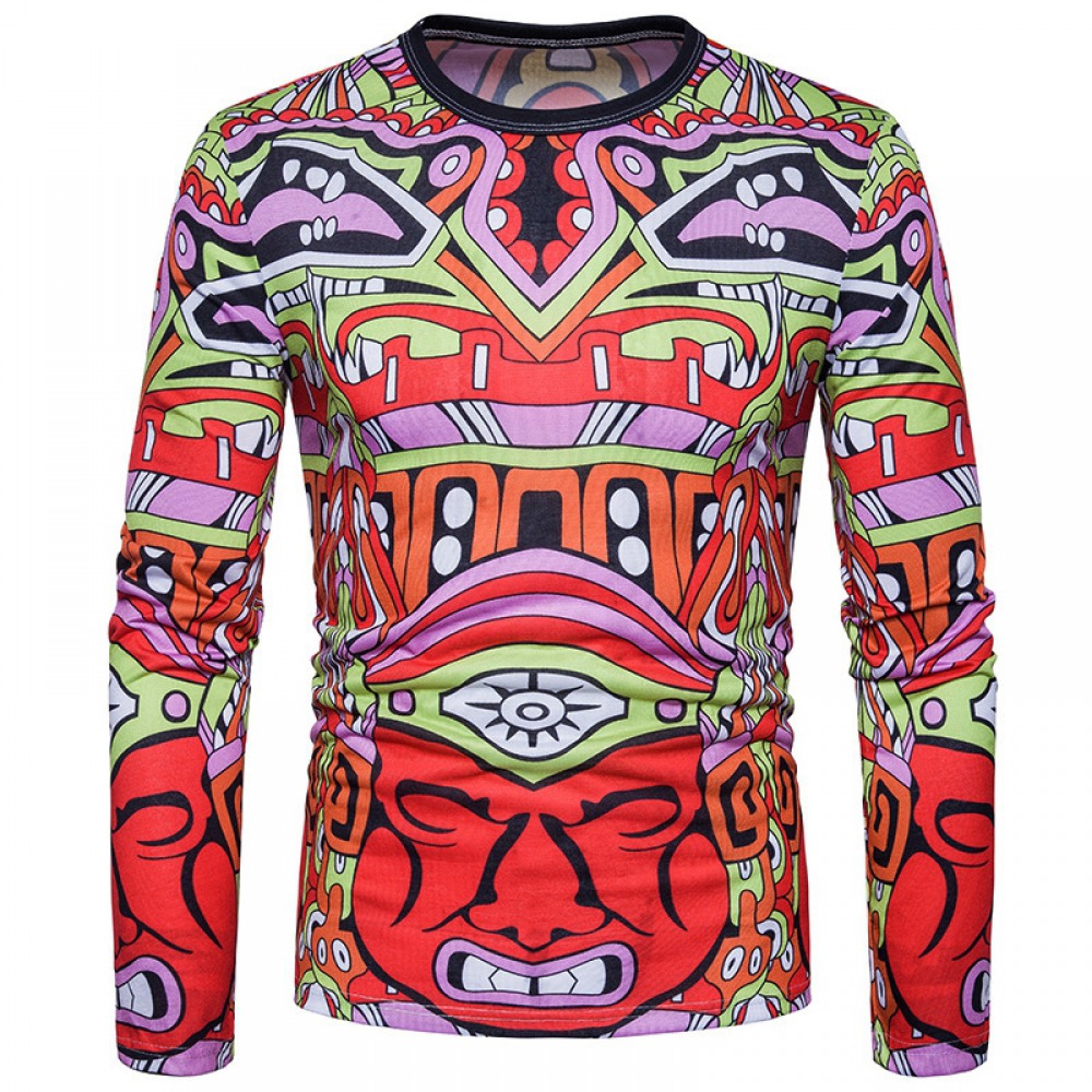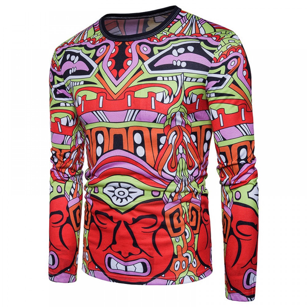 New Style Men's Abstract Character Graphic Print Long-Sleeved T-Shirt