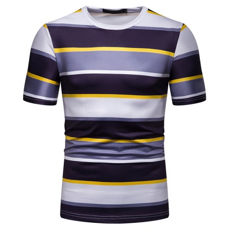 New Summer Men's Short-Sleeved T-Shirt Men's Contrast Striped Slim Casual T-Shirt