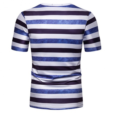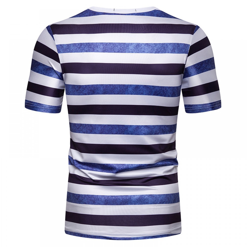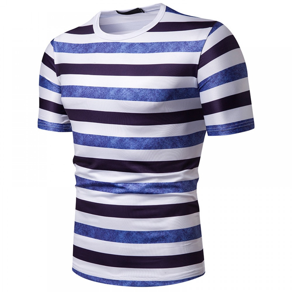 New Summer Men's Short-Sleeved T-Shirt Mens Contrast Striped Slim Casual T-Shirt