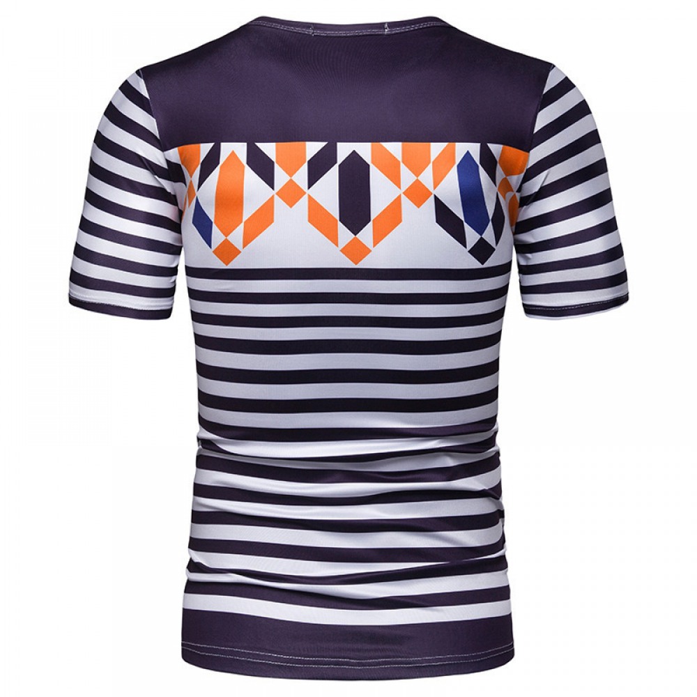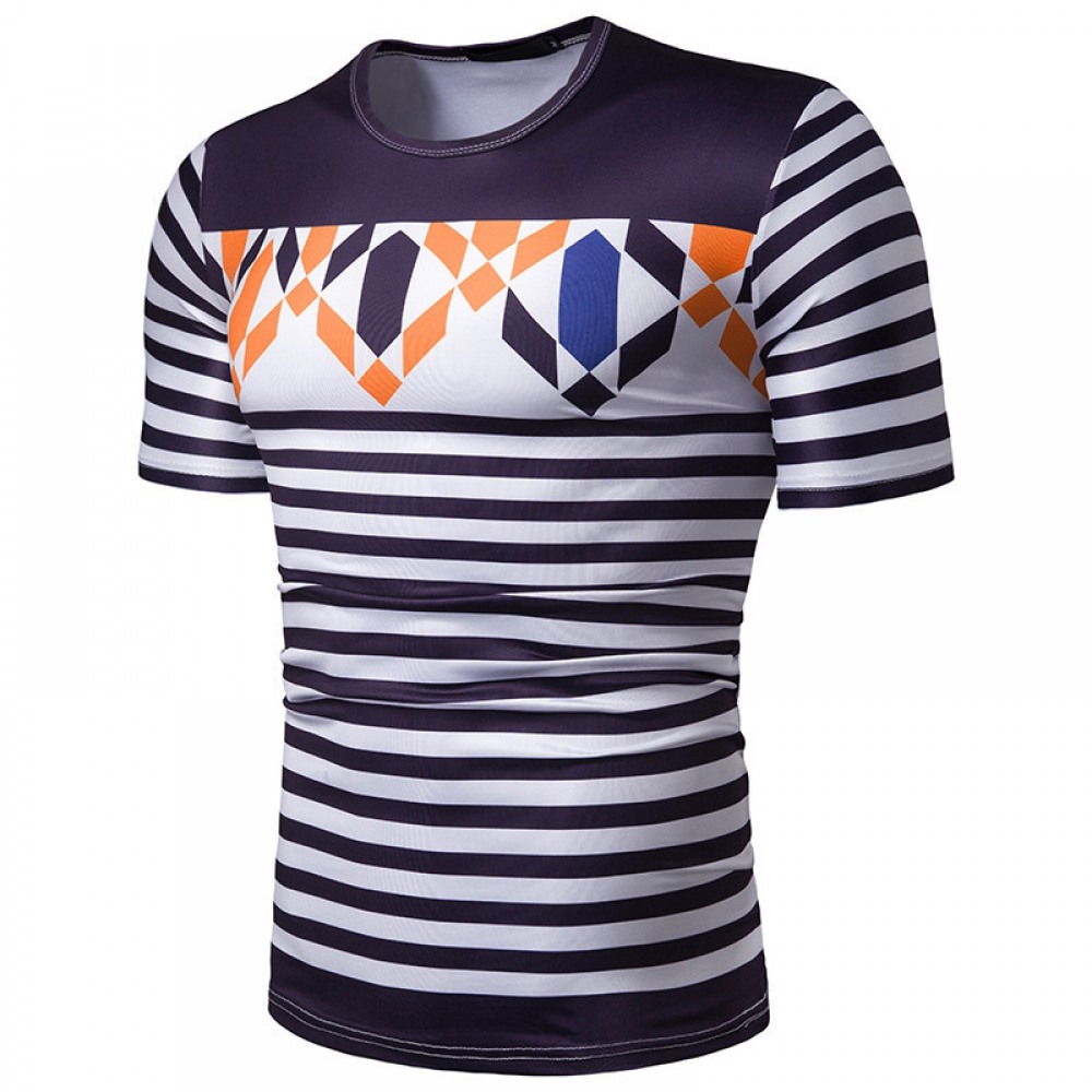 New Summer Men's Short-Sleeved T-Shirt Mens Contrast Striped Slim Casual T-Shirt