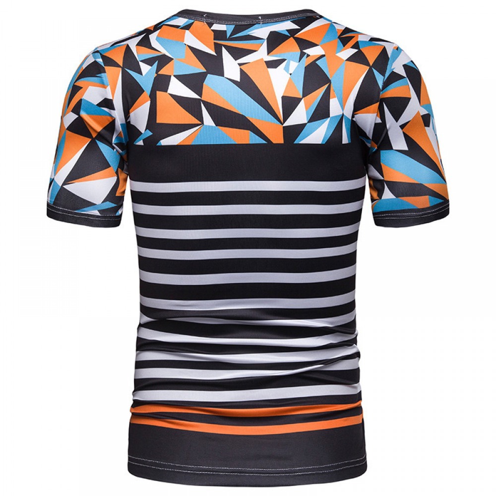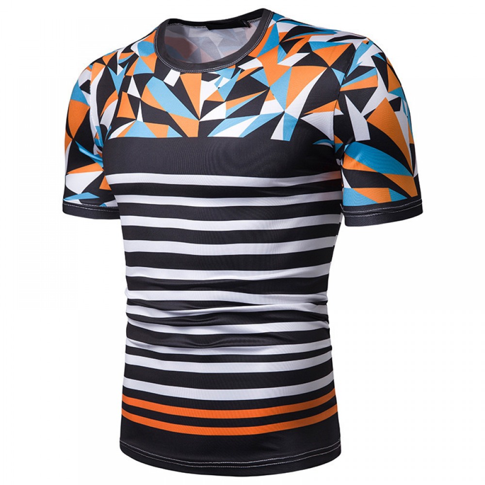 New Summer Men's Short-Sleeved T-Shirt Mens Contrast Striped Slim Casual T-Shirt