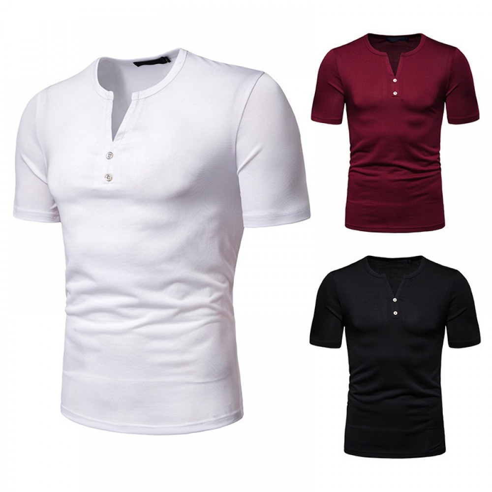 New Summer Thin High Stretch Men's Short Sleeve V-Neck T-Shirt